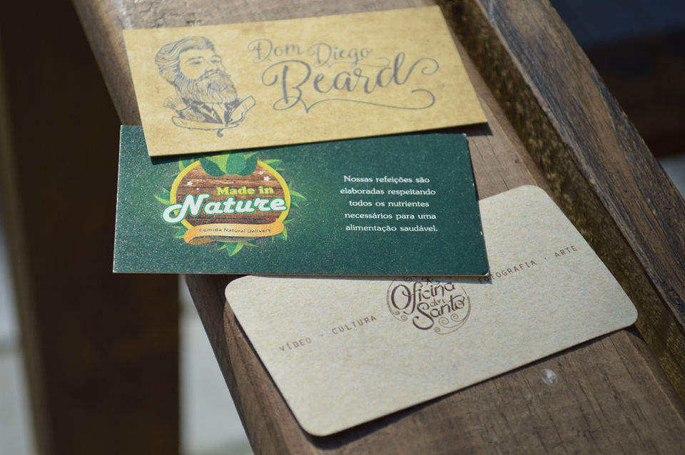 Cartão de visita em papel reciclado 240gr., podendo optar por adquirir laminação fosca para aumentar a resistência do material. Impressão de ótima qualidade Offset no papel, absorvendo bem todas as cores.